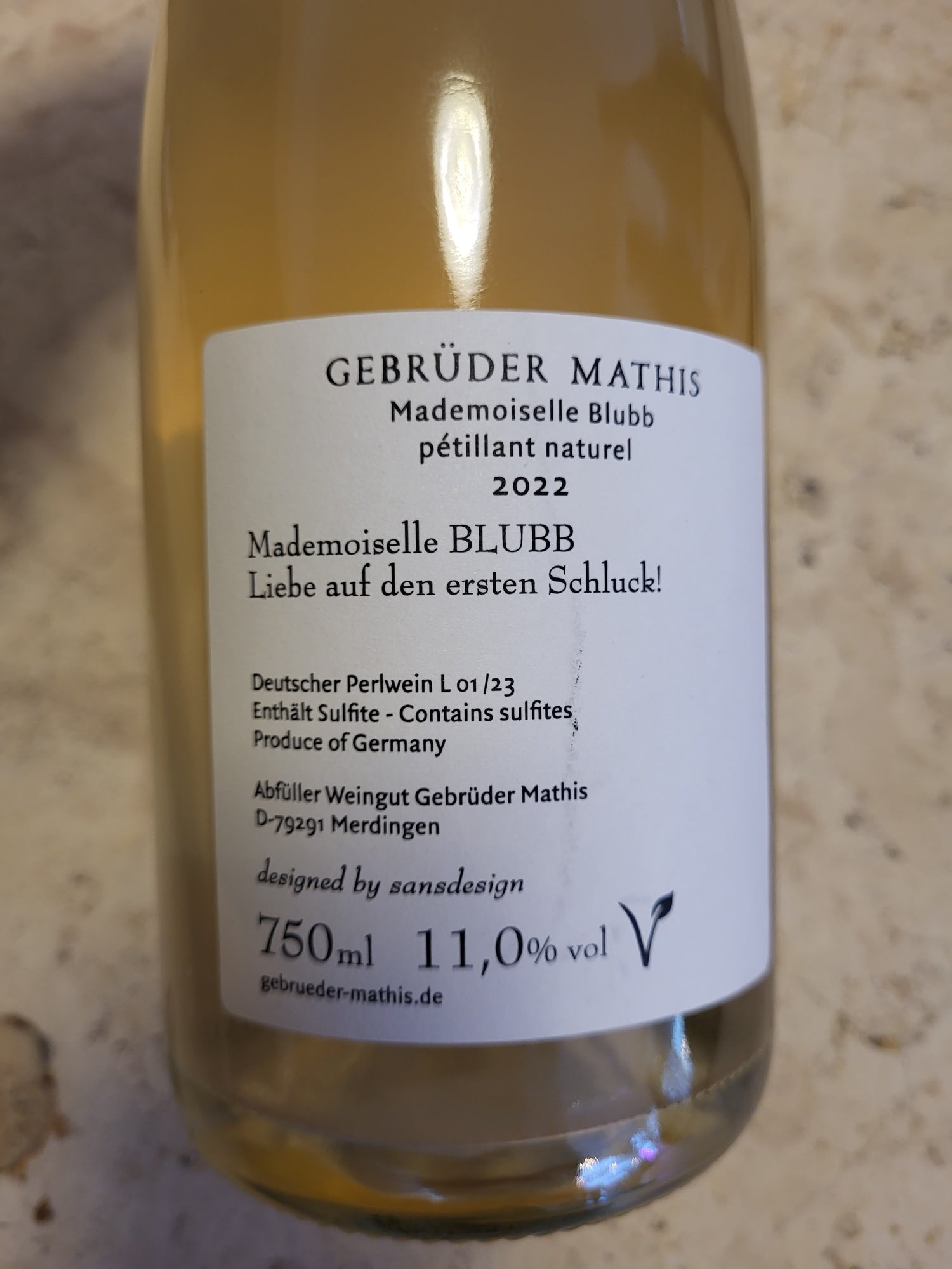 Gebrüder Mathis - Mademoiselle Blubb (75cl) - Frisch-fruchtiger trockener Pét-Nat, perfekt zum Apéro.