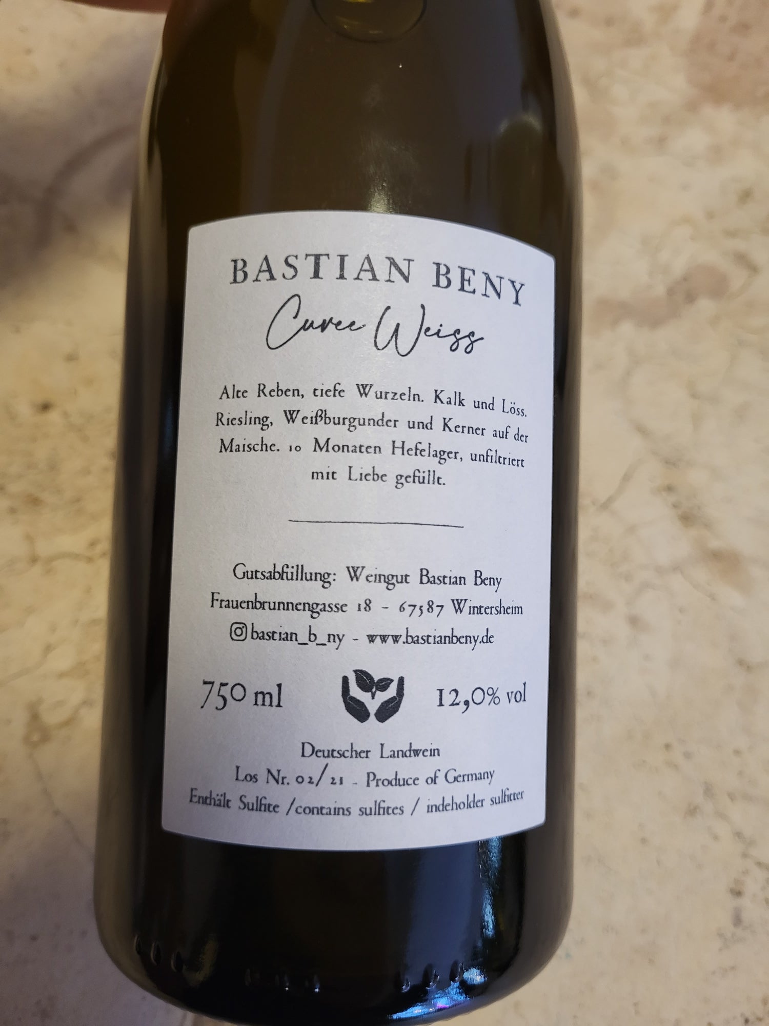 Bastian Beny - Cuvée Weiss (75cl) - Weiss mit Power, perfekter Essensbegleiter zu Salaten, gebratenem Gemüse, leichten italienischen Vorspeisen, weissem Fleisch oder einfach so.