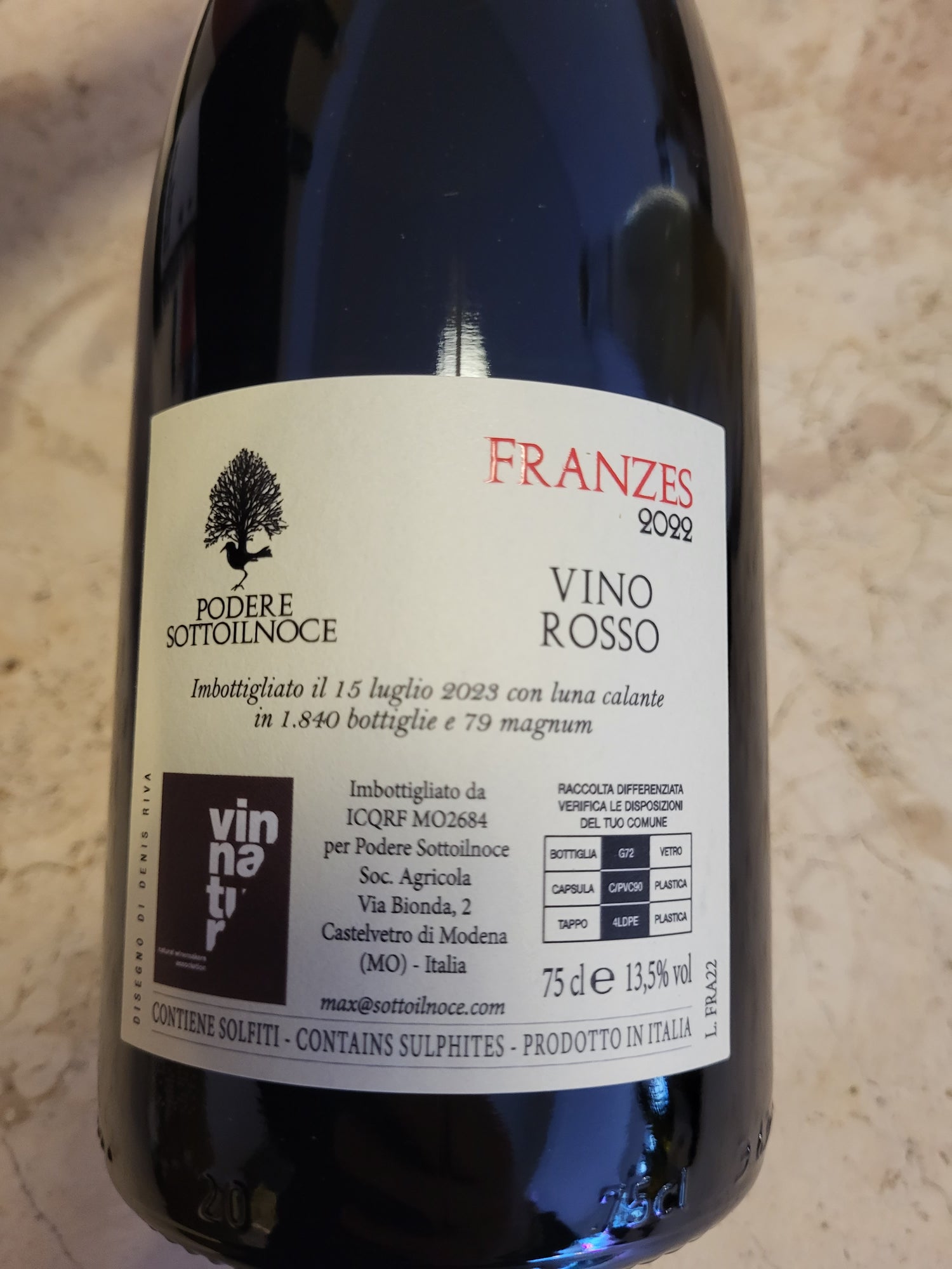 Sottoilnoce - Franzes 2022 (75cl) - Überzeugt mit satter Frucht, ist durch eine feine Frische super Balanciert. Perfekt zu Braten oder Schmorgerichten, mit oder ohne Fleisch. Eine Seltenheit: Stiller Rotwein aus Lambruscotrauben.